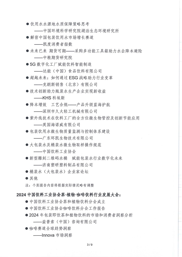 2024中国包装饮用水峰会 2024中国茶·植物·咖啡饮料发展研讨会正式通知